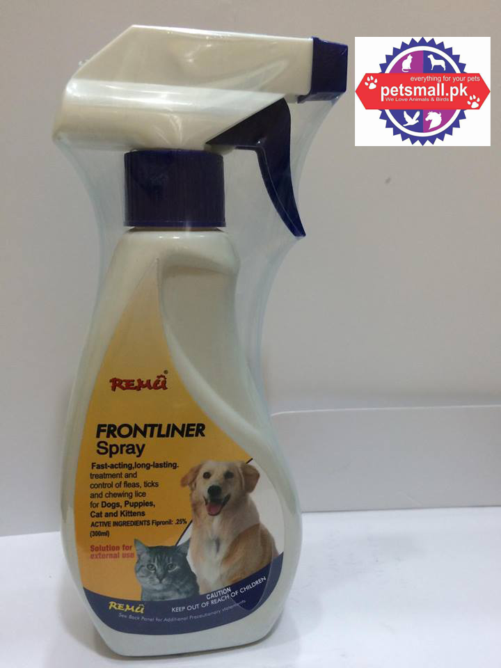 Remu Frontliner Dog & Cat Spray is a fast-acting, long-lasting treatment to control of fleas, ticks and chewing lice in dogs, puppies, cats and kittens.